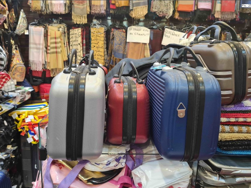 item 8) 50-malas de viagem (material em acrílico), tamanho pequeno, cores e modelos variados ao valor unitário de R$300,00; LANCE MÍNIMO: R$ 9.000,00