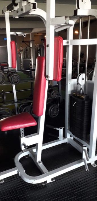 01 (UMA) MÁQUINA DE DESENVOLVIMENTO DE OMBROS, marca Nakagym, sem número de série visível. Cor predominante: branca. Avaliação: R$6.000,00 (seis mil reais); LANCE MÍNIMO: R$ 1.200,00